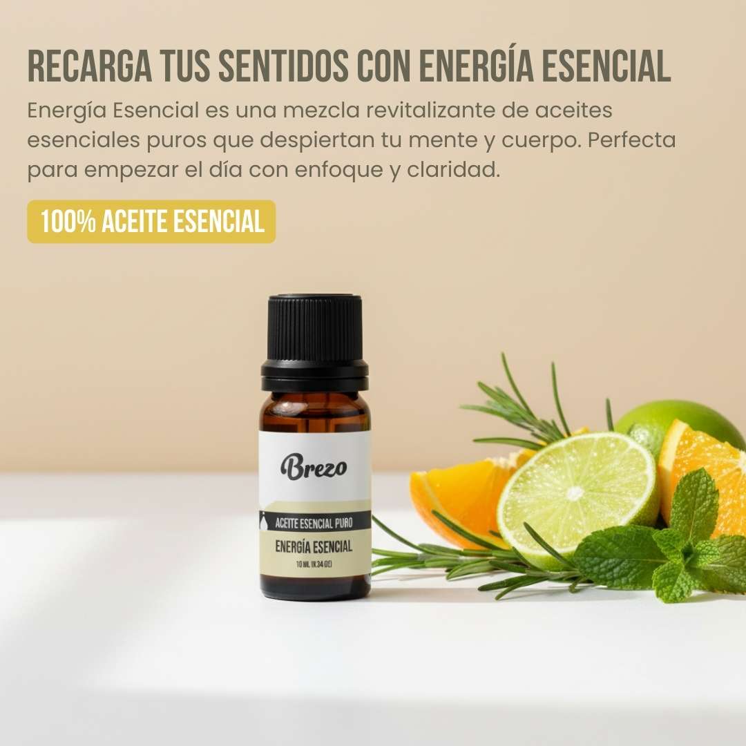 Energía Esencial es una mezcla revitalizante de aceites esenciales puros que despiertan tu mente y cuerpo. Perfecta para iniciar el día con enfoque y claridad.